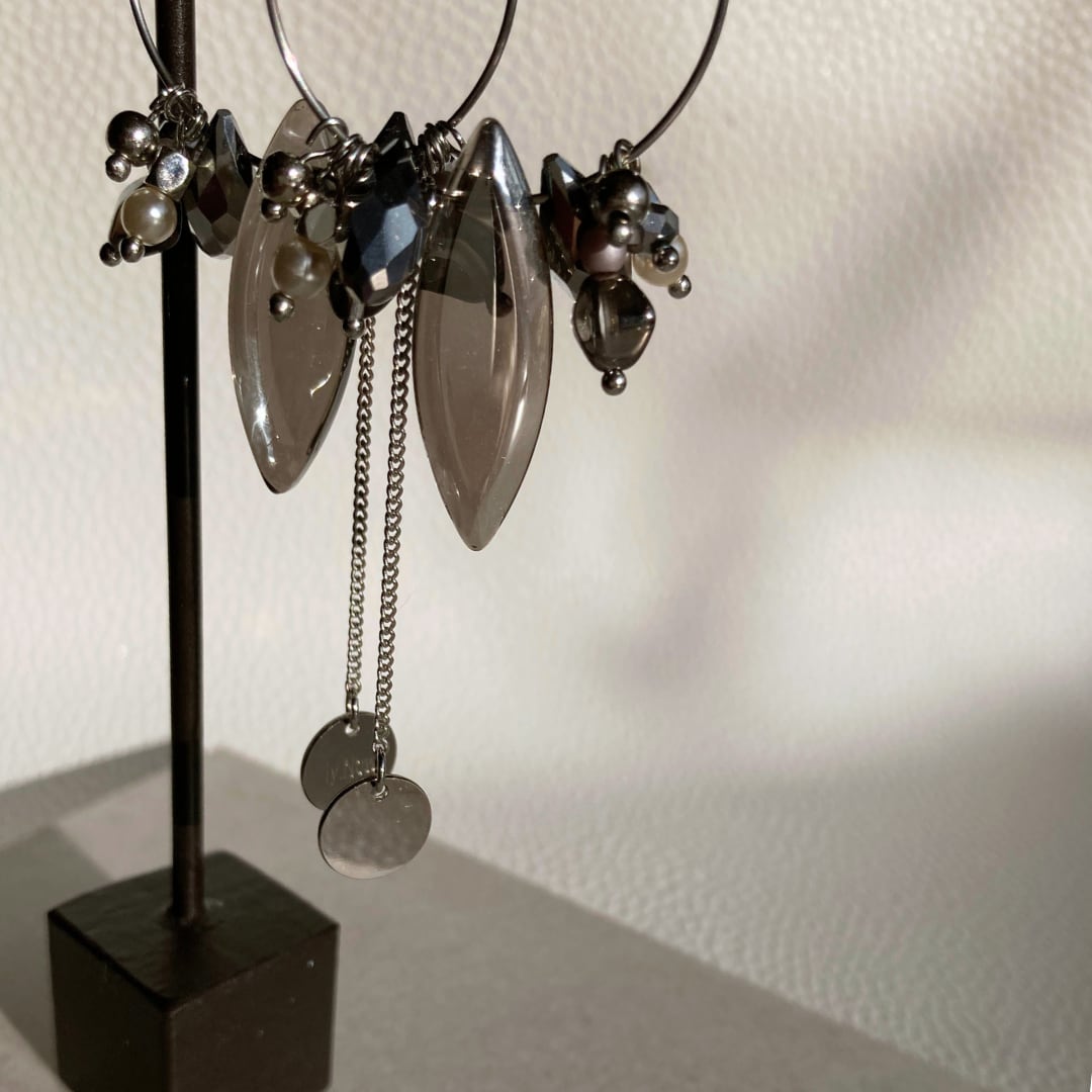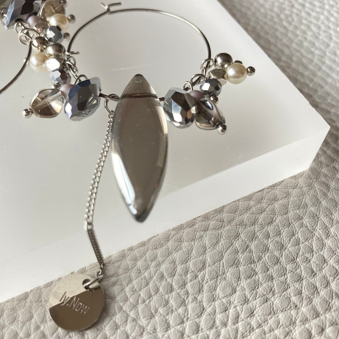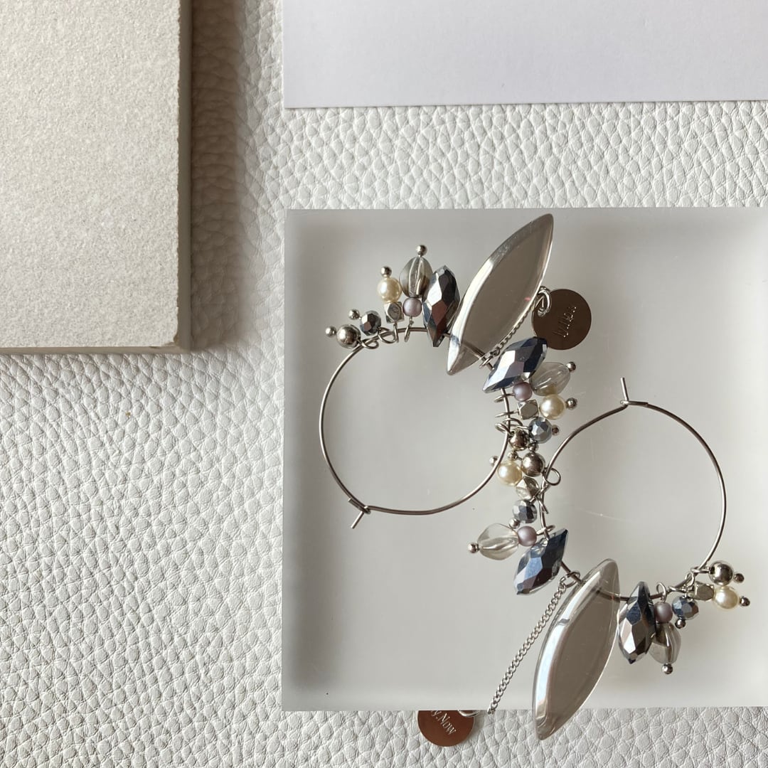 パールやマットなパープルグレーのビーズを